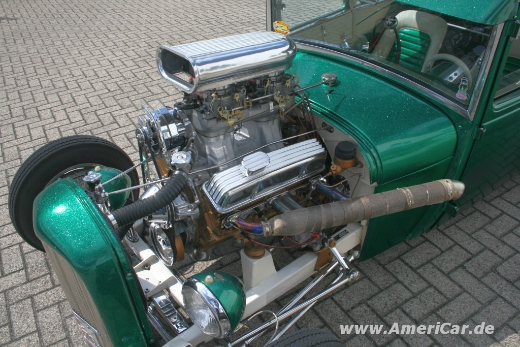 Amerika vor rund 50 Jahren: Junge Rebellen fahren mit ihren umgebauten amerikanischen Autos illegale Straßenrennen. Dicke Achtzylinder Motoren, kaum noch Innenausstattung und Gewichtsersparnis dank Weglassen von Kotflügeln und Motorhaube. Die Herrschaften tragen Tollenfrisur, hören Rock´n´Roll und rauchen Lucky Strike Zigaretten. Getroffen wird sich am Wochenende auf Parkplätzen vor Diners oder Bars - das war die Geburt des Hot Rodding. Auch wenn viele Trends versucht haben, den Großvater des Tunings zu ersetzen, so erfreut sich das Hot Rodding und die dazugehörige Lebenseinstellung vor allem heute einer riesigen Fangemeinde. Auch Markus Pauly aus Aachen ist dem Hot Rod-Virus verfallen, so steht in seiner US-Car Garage auch dieser 1929 Ford A Sedan.